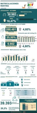 El ‘rent a car’ cerró los diez primeros meses del año con un crecimiento del 17,9% en el número de matriculaciones –entre turismos e industriales–, situándose en la cifra de 198.368 unidades, según datos de la consultora MSI para Feneval.